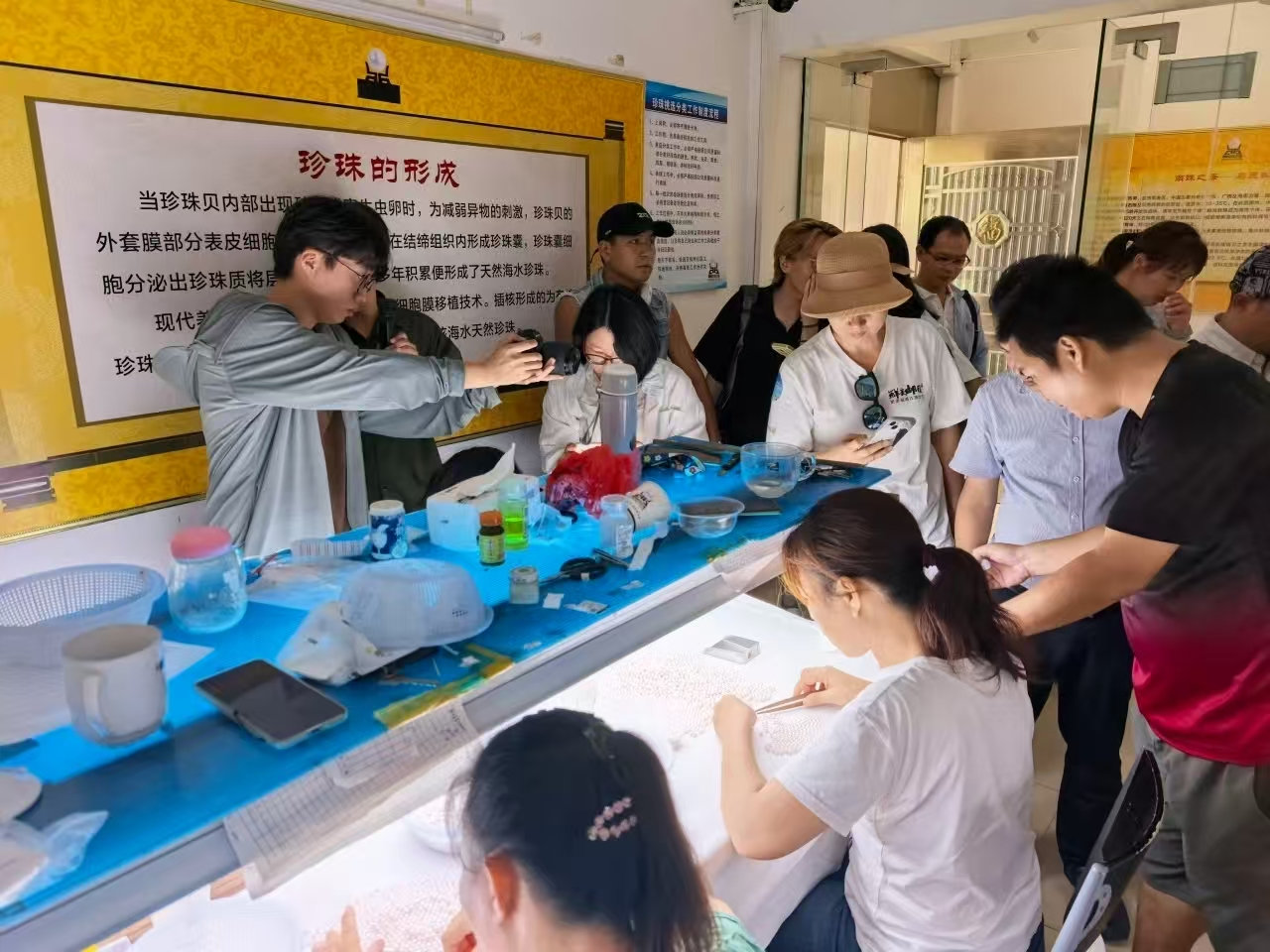 采风组第一站走进雷州覃斗镇流沙村,参观广东尊鼎珍珠产业基地,实地了解南珠孵化、养殖、加工、研发及销售情况。该公司是一家全产业链和品牌优质珍珠产品的供应商和集珍珠孵化、养殖、加工、珍珠研发及技术培训、销售和文化一体化的高新技术企业。目前该公司正以高手笔打造起尊鼎珍珠文化产业园,以挖掘南珠历史、传承南珠文化、展望南珠未来为核心,融合一二三产业发展的新思路,以珍珠产业带动观光旅游,赋能“百千万工程”,助力实现乡村振兴战略。园区建成后可创造1500个就业岗位,联结带动支持周边村2000个就业岗位。